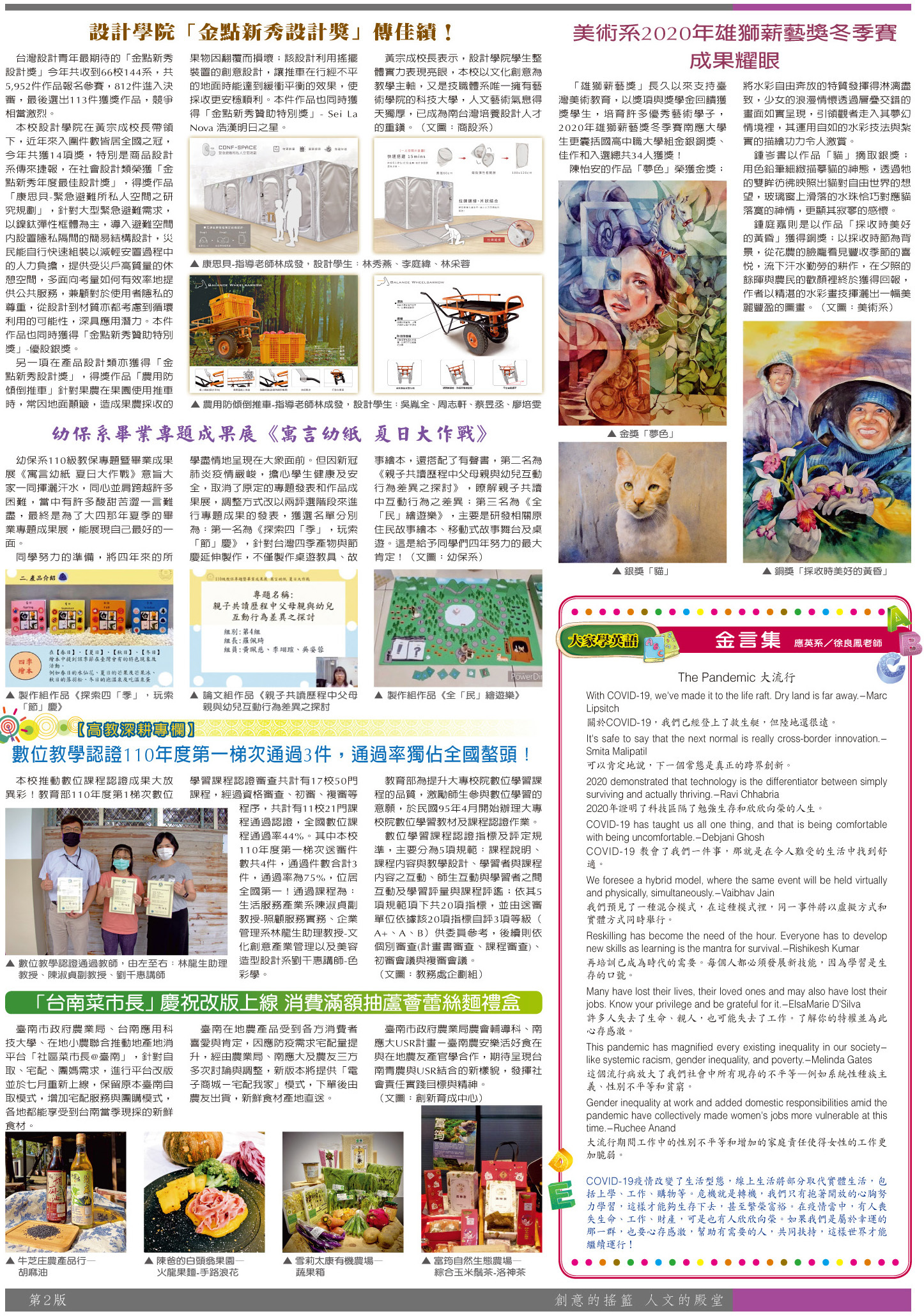 校園傳真 競賽獲獎•系科展演•大家學英語•高教深耕專欄