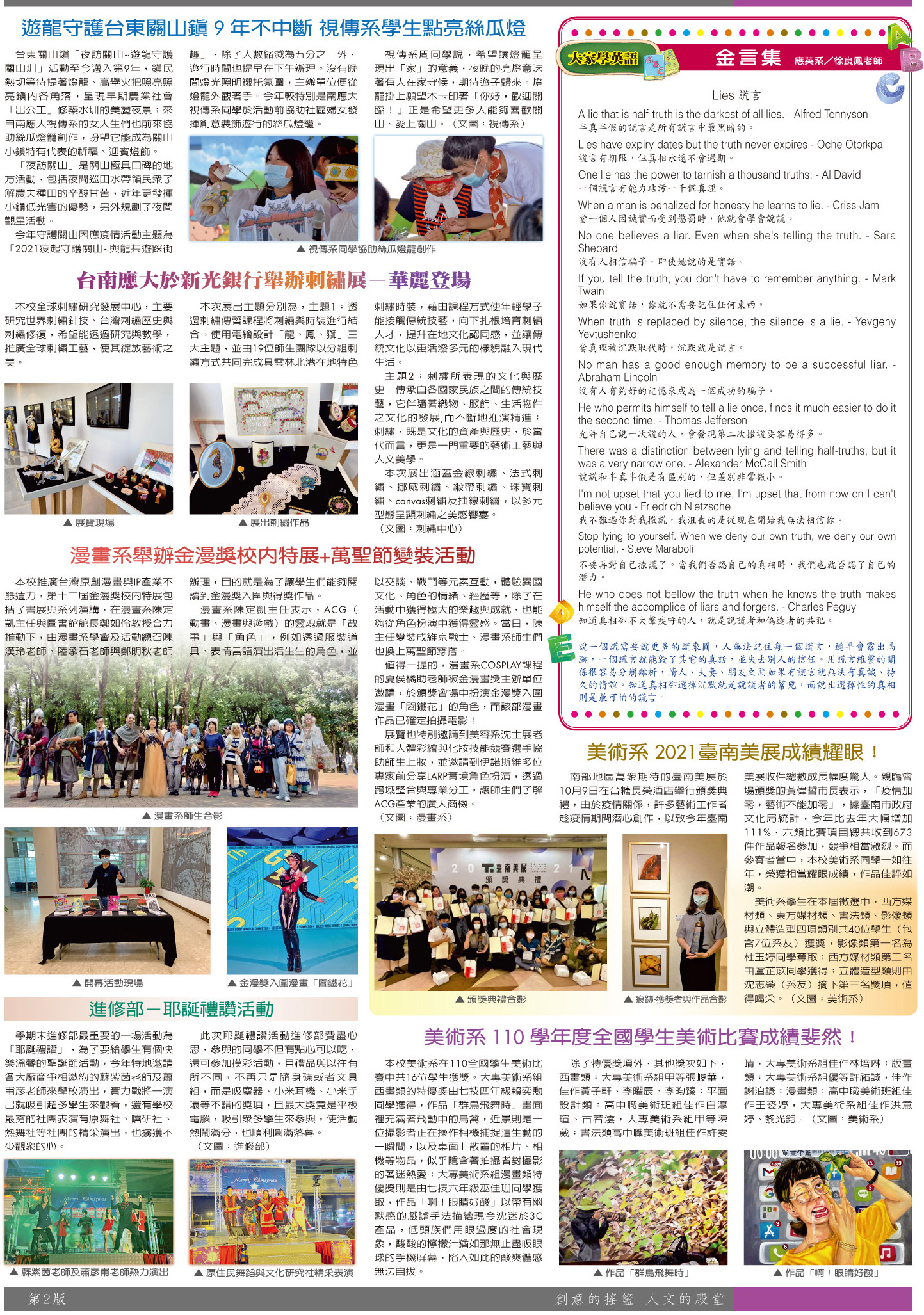 校園傳真 校內活動•系科展演•大家學英語•學生獲獎榮耀