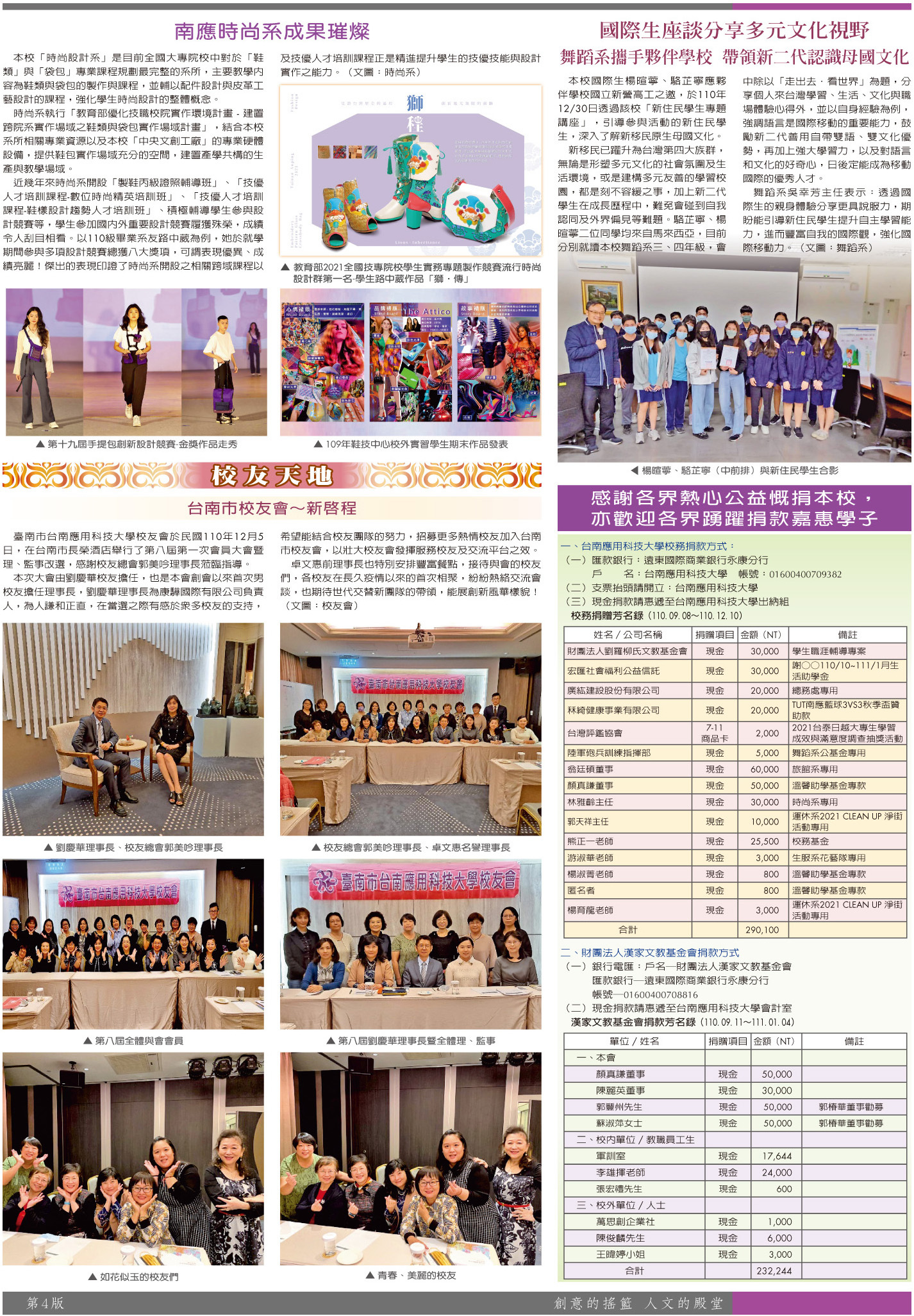 綜合訊息 系科績優專欄•校友天地•捐贈芳名錄