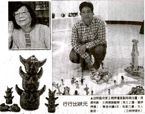 四年前,自閉症少女王婉婷去上台南科大美術系,從那一刻起,媽媽謝碧華犠牲自己的生活,背起行囊,從台北南下租屋,四年來專職伴讀;「我的人生跟著她的腳步在走」,媽媽無悔付出,也成就婉婷無憂踏上藝術路。 二十三歲王婉婷自小有自閉症,雖不善與外界溝通,卻擁有豐沛藝術天分,擅長油畫與捏陶,獲獎無數,三年前曾以精湛畫藝,榮獲美國身心障礙藝術家競賽第一名,今年獲邀展出「讓愛生根聯展」,目前在嘉義舉行「黑手DIY 」陶藝個展。 婉婷的「藝」想天開,讓她信手拈來就可揮灑創意,不過,直率表現卻讓旁人不敢親近,因這層顧慮,王媽媽從她考上台南的大學後,就決定從台北南下租屋照顧女兒。 六十二歲的謝碧華說,升高中時,女兒就告訴她台南科大有七年制美術系,但她建議大學才南下。來台南之後,婉婷原本自己上學,媽媽只負責打理生活起居,但大一時,觸感敏銳的婉婷因不熟悉環境而緊張,藉由拉同學頭髮才會安心,引來同學誤會,媽媽經與老師溝通後,展開全程伴讀,化解同學心防。 如今,走在校園裡頭,許多人都認識這對母女,婉婷也在老師引薦下,到一旁三村國小義務指導美術課,展現自己對藝術的熱忱。 眼見婉婷將畢業,老師雖建議讀碩士,但媽媽擔心她能力不足,仍在考量,媽媽說,最好的方式是日後在家成立工作室,提供婉婷揮灑創意的空間,做自己能力範圍內喜歡、擅長的事。 |