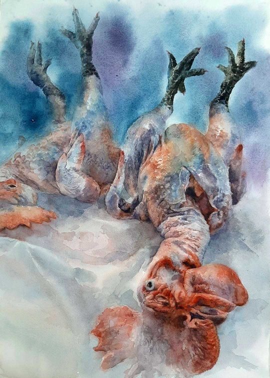 獲得銀獎的吳芊慧同學,其作品「生命的最終」,以透明生動的水彩技法,對人類日常食物的描繪,表達出感恩與惜福的態度。