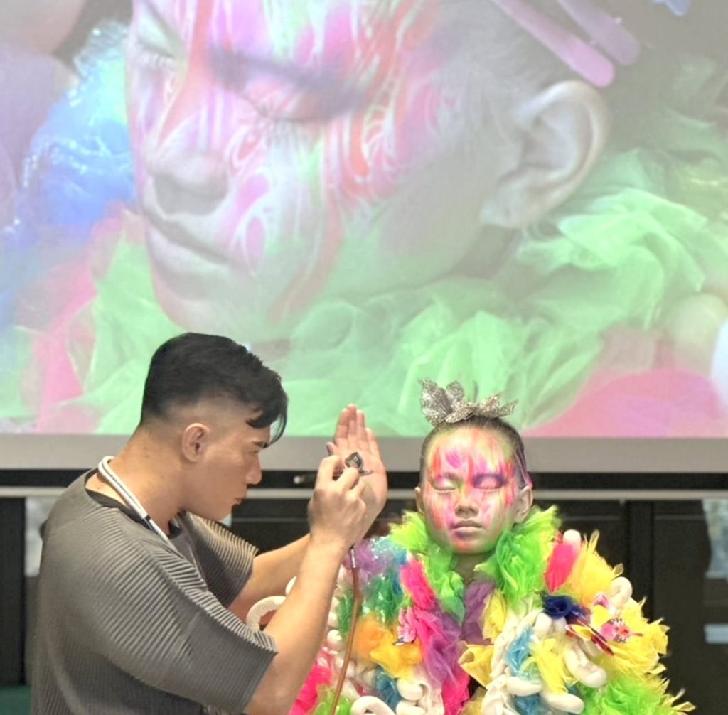 另美容系更安排專擅於流行時尚、創意、噴槍彩妝及特效化妝及人體彩繪老師Dino,現場操作示範彩妝技法,濟大師生對其自由靈活、揮灑自如的手技,無不凝神靜觀、多方揣摩並咸表嘆服。另濟大師生也參觀該系嶄新一流、各具功能的近二十間專業教室及校內實習場域,對台灣美容技職教育用心經營、軟硬體設施齊備,留下深刻印象。