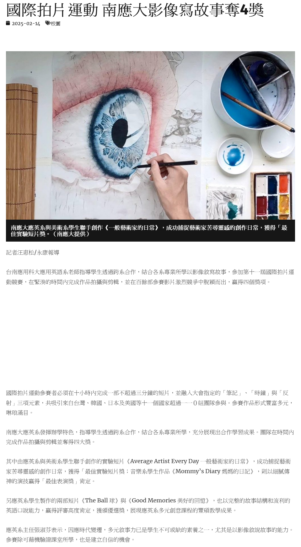 南應大應英系發揮辦學特色,指導學生透過跨系合作,結合各系專業所學,充分展現出合作學習成果。團隊在時間內完成作品拍攝與剪輯並奪得四大獎。