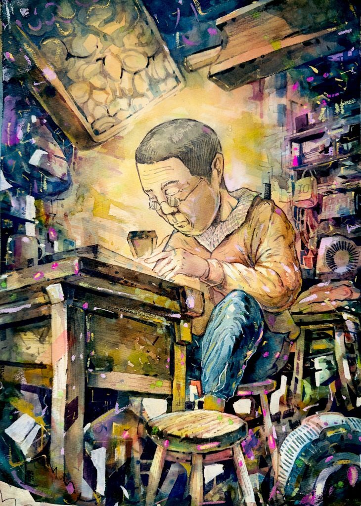 其中吳家毅的銅獎「匠光」作品,展現了「匠心」與「時光的沉澱」,透過職人的身影,表達出對傳統工藝的尊敬,及對專注與耐心的詮釋。畫面中的溫暖光線,像是一種精神的燈塔,映照出工藝之美與人生價值。在現代快速變遷的時代,這樣的場景彷彿是一個安靜的角落,提醒我們慢下來,感受每個當下的堆疊與積累。