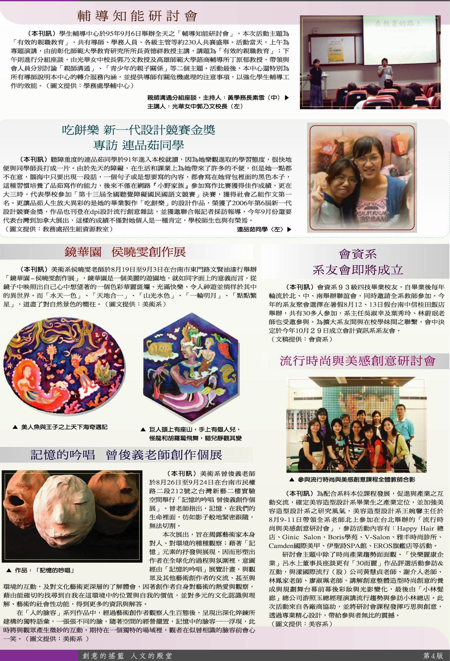綜合訊息 美感創意 研討會•展覽 活動預告•校友天地
