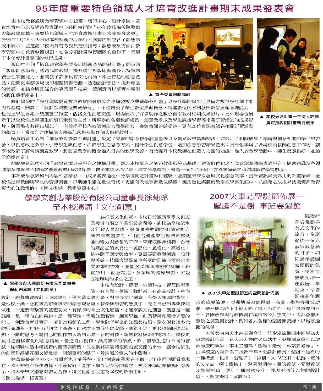 校園焦點 特色領域人才培育改進計畫成果發表•重點新聞•文化創意講座