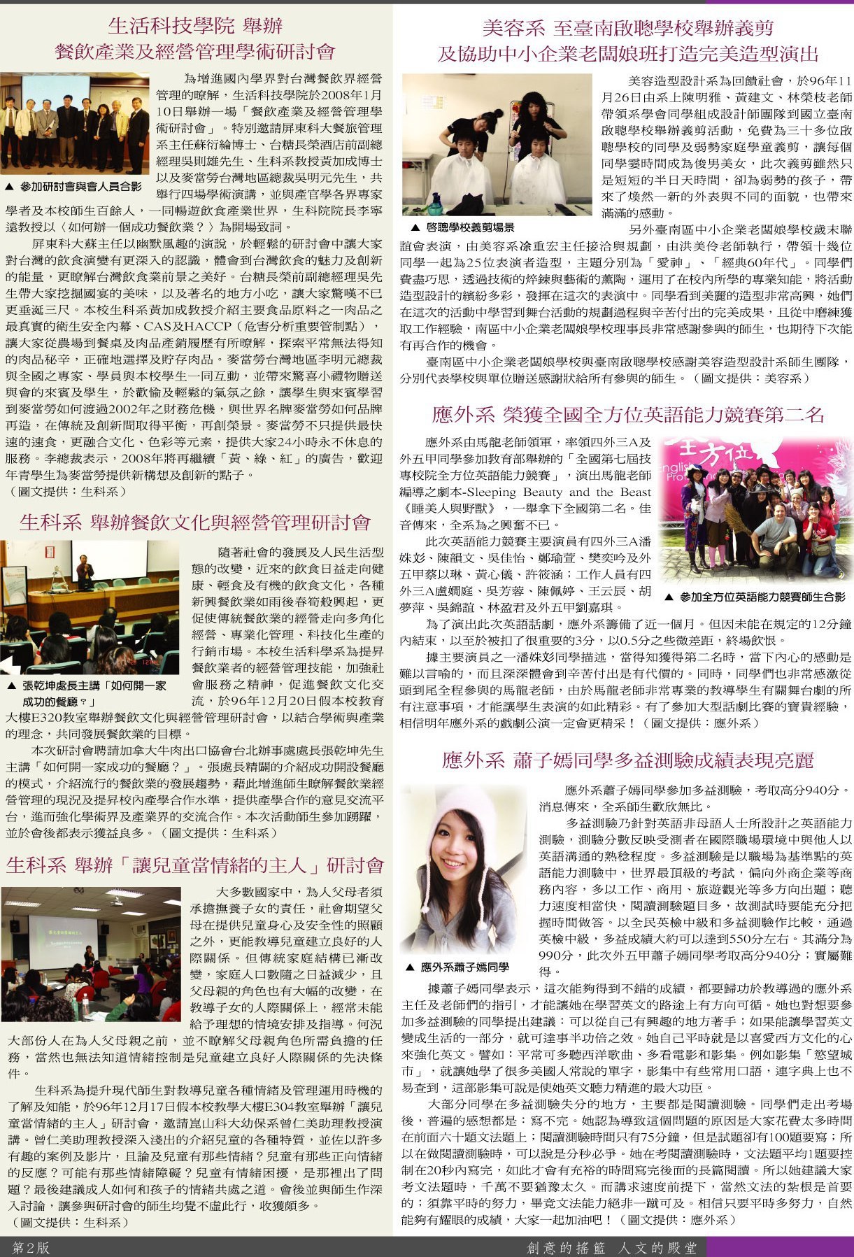 校園傳真 美容系義剪•各科系學術研討會•榮譽榜