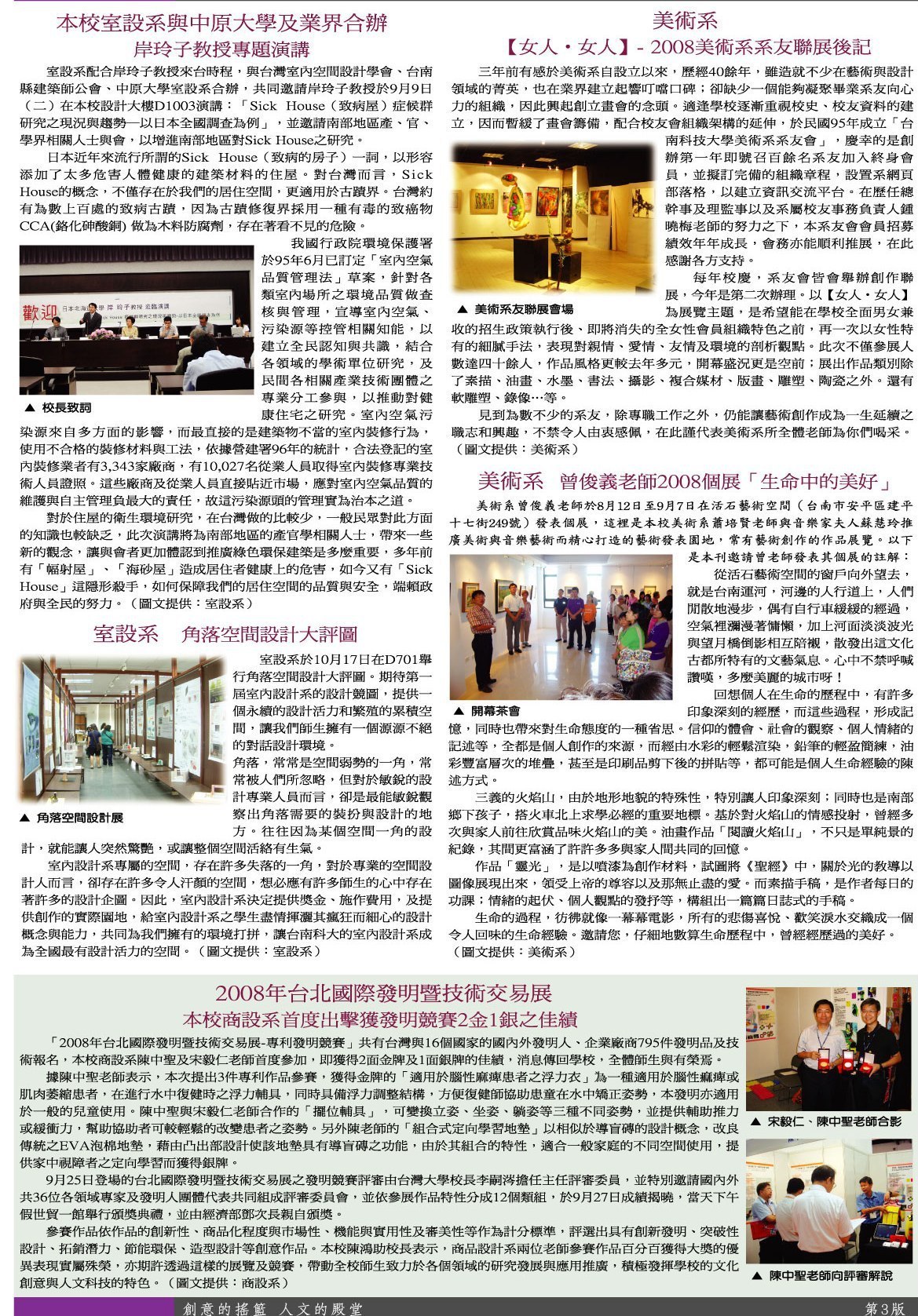 校園報導 專題演講•美術系系友聯展•空間設計評圖•榮譽榜