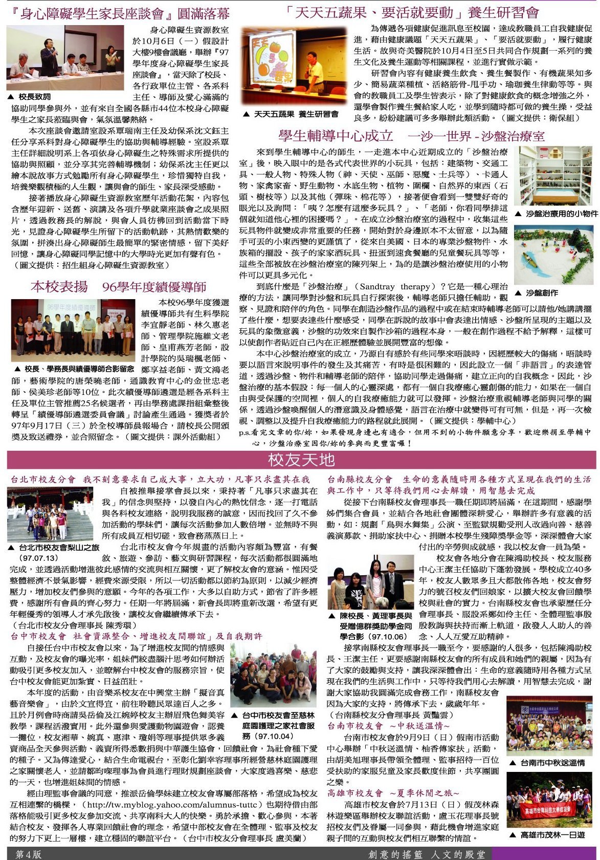 綜合訊息 96學年度績優導師•養生研習會•校友天地