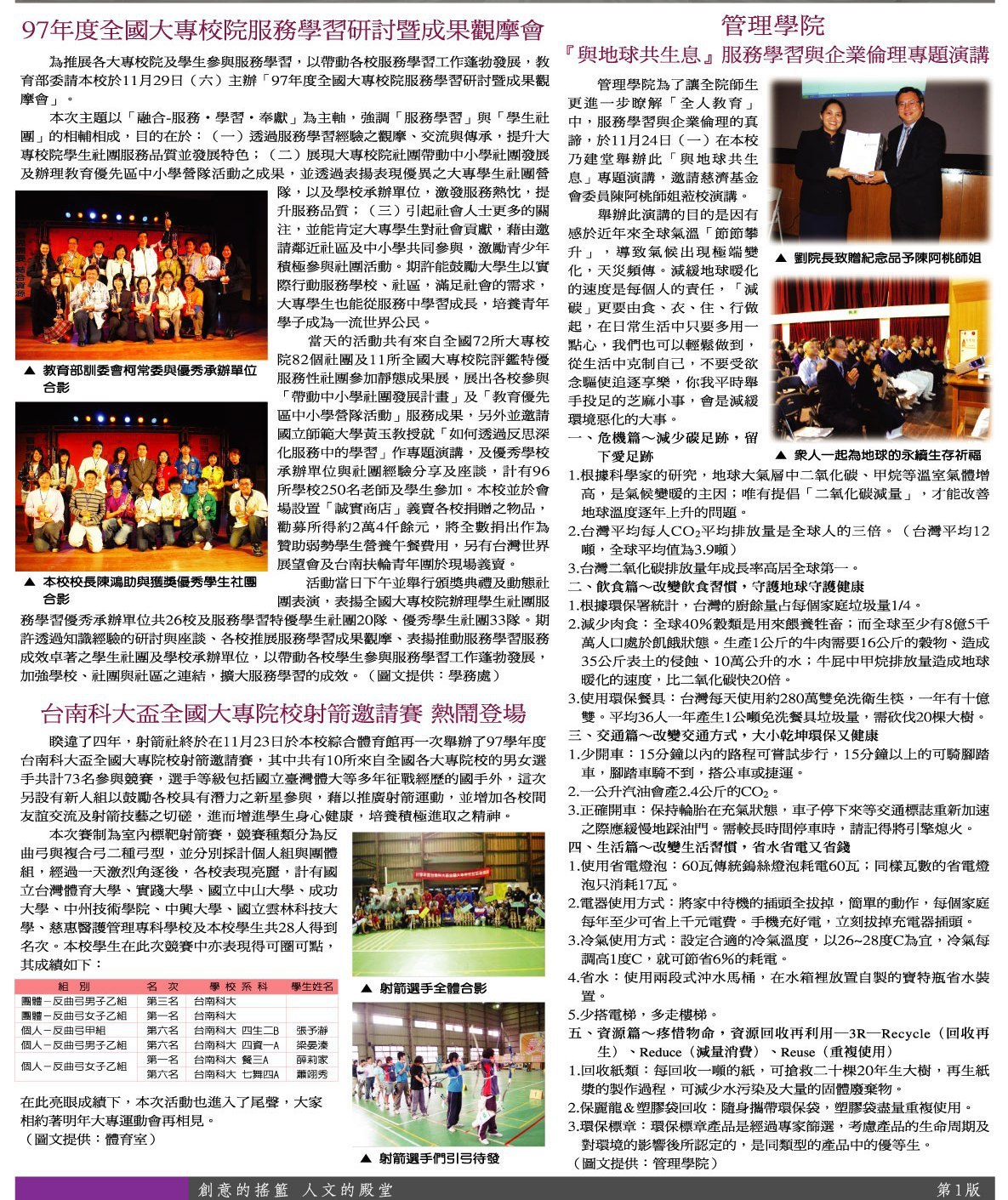校園傳真 二手義賣活動•生活美學講座•榮譽榜