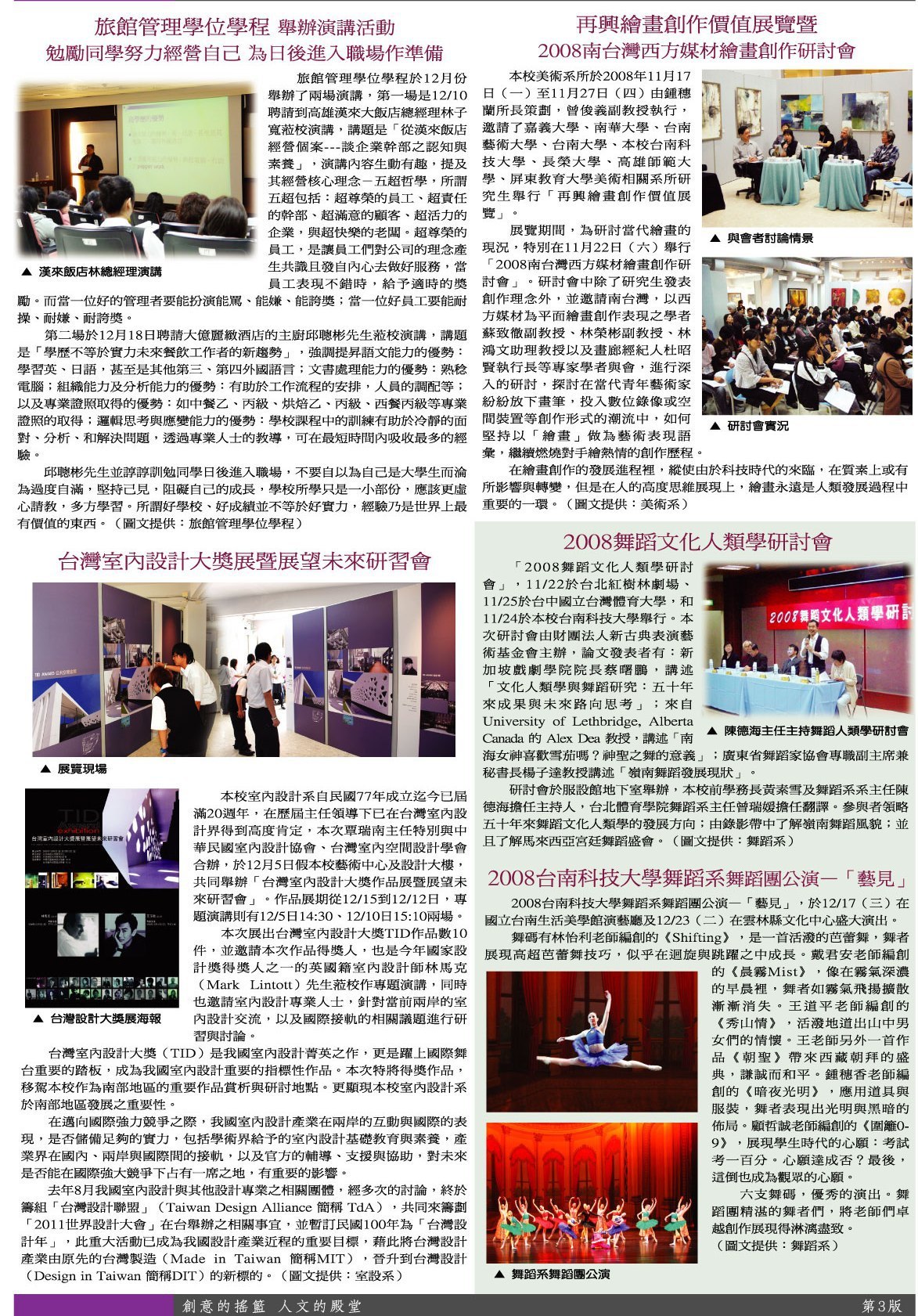 校園報導 舞蹈團公演•各科系研討會暨講座•旅館系演講活動