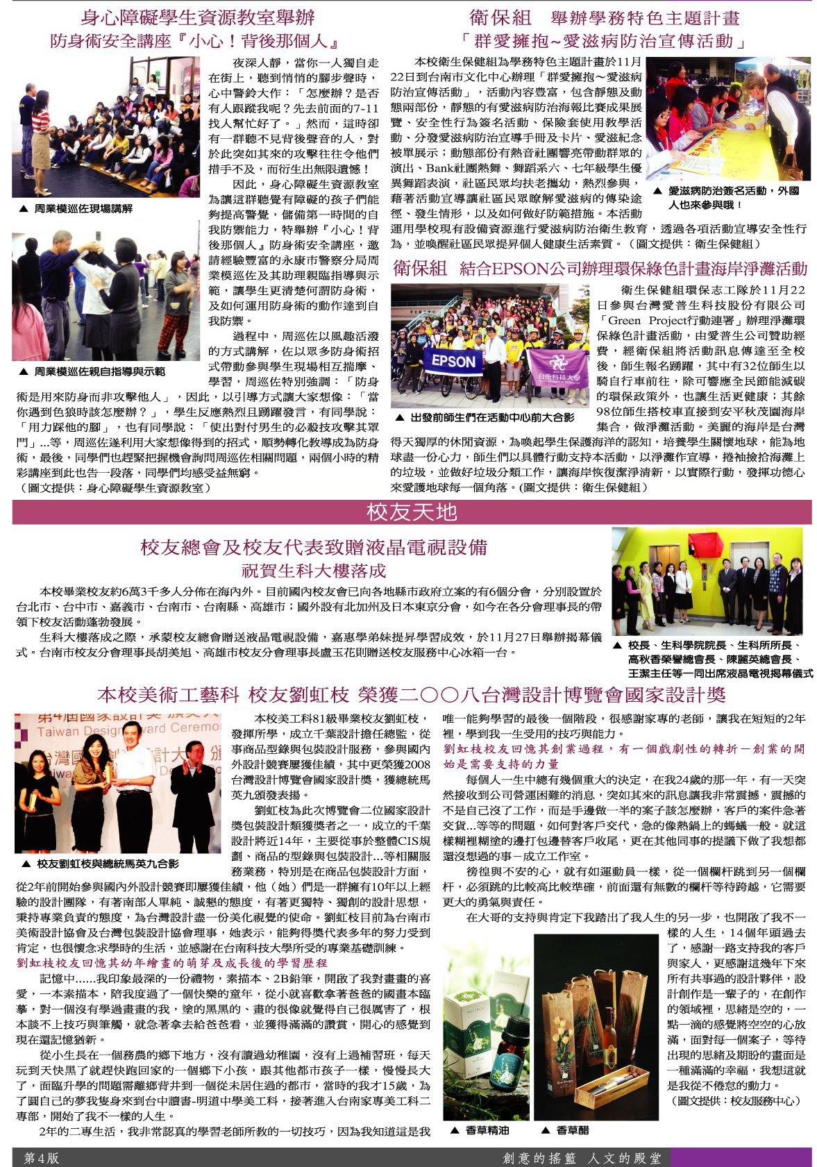 綜合訊息 防身術安全講座•愛滋病防治宣導活動•校友天地