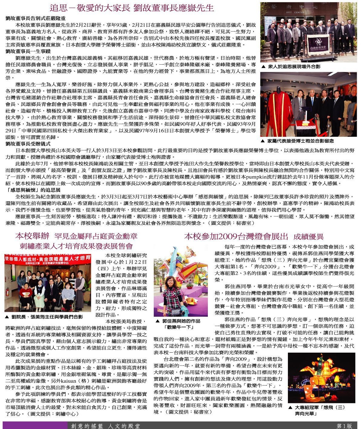 校園焦點 重點新聞•本校參加台灣燈會展出•刺繡成果發表展售會