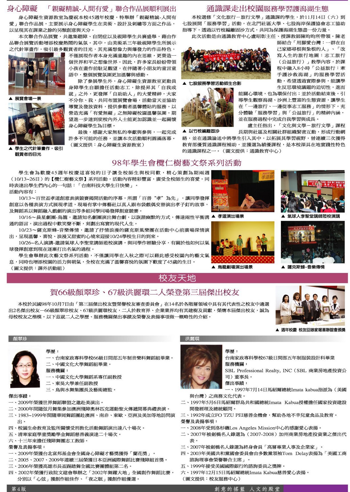 綜合訊息 身心障礙聯合作品展順出•欖仁樹藝文祭系列活動•校友天地