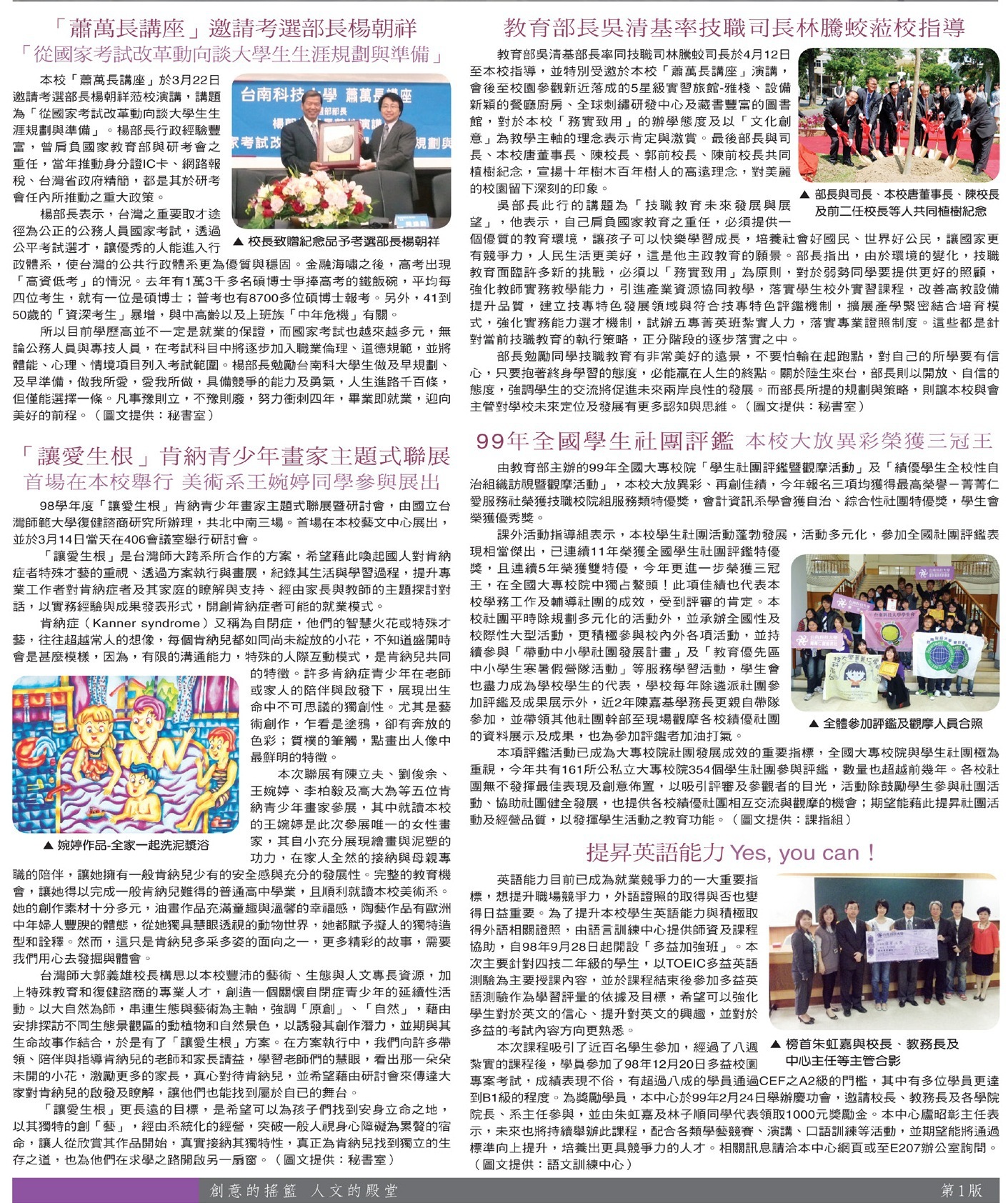校園傳真 99級畢業動態成果展•課後照顧學位學程•研發處專題報導
