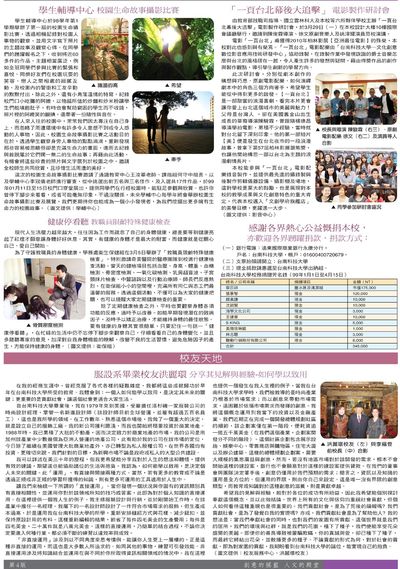 綜合訊息 電影製作研討會•捐贈芳名錄•校友天地
