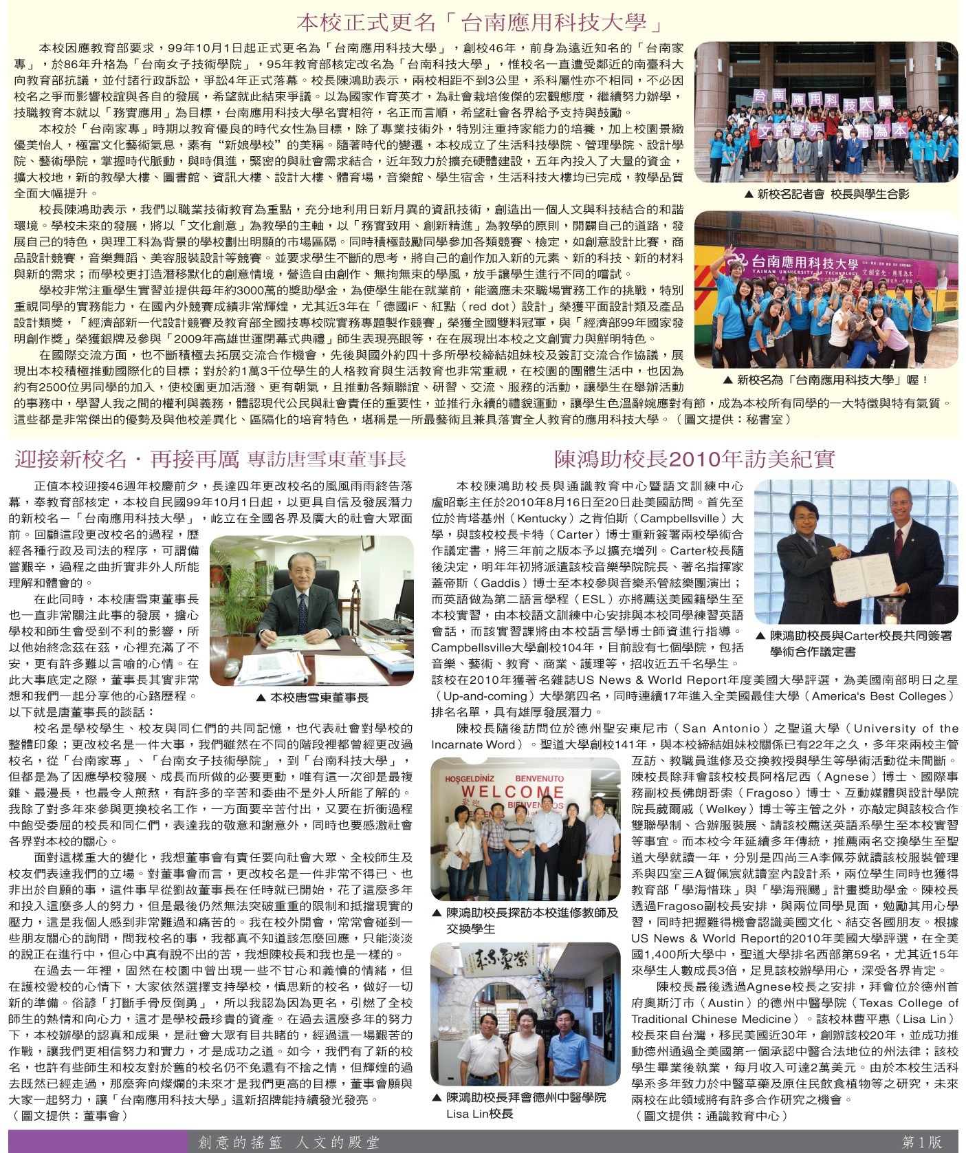 校園焦點 校園活動報導•重點新聞•訪美紀實•迎接新校名