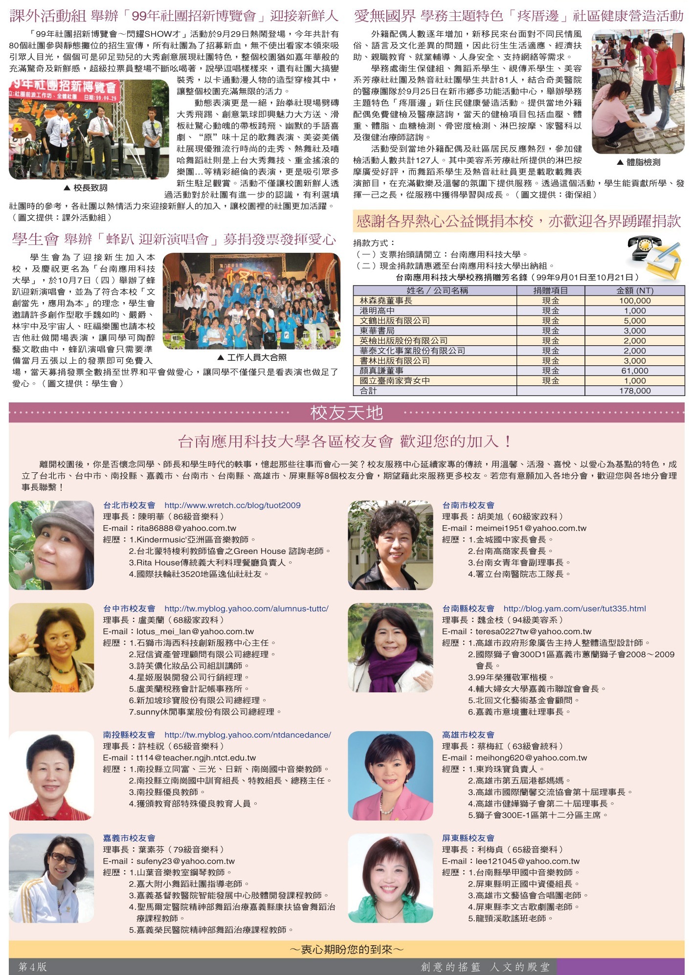 綜合訊息 社團招新博覽會•捐贈芳名錄•校友天地