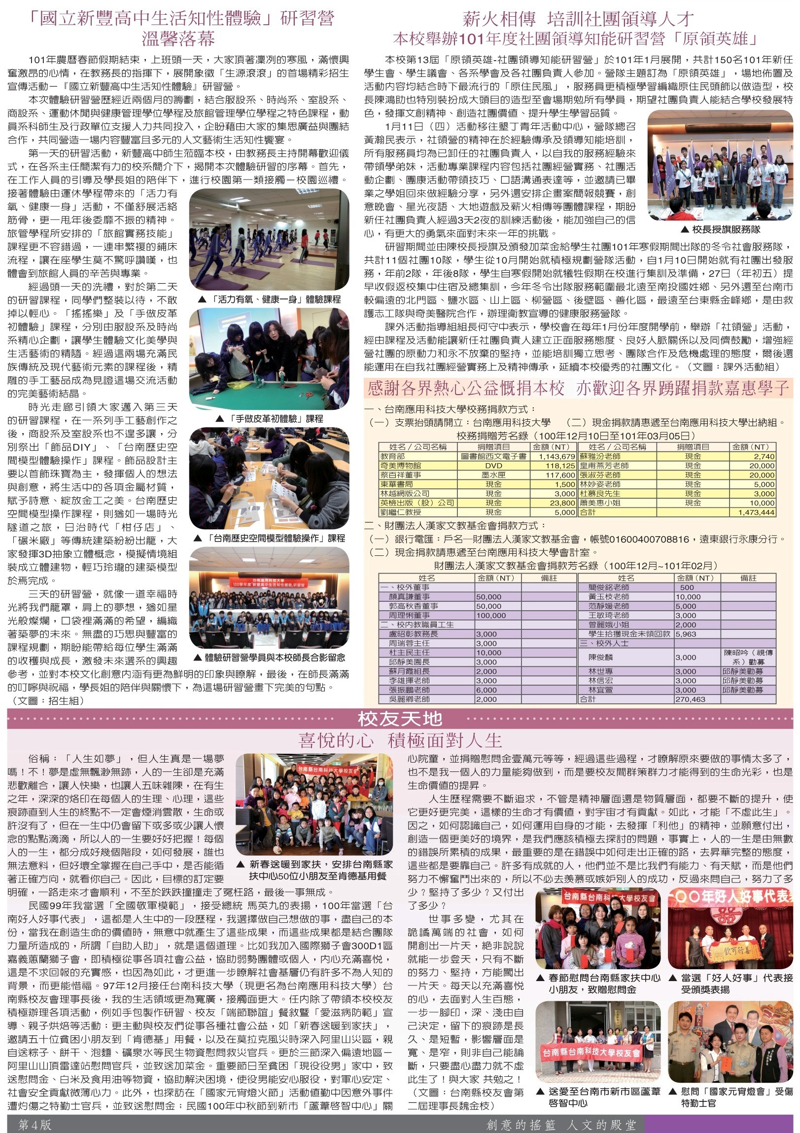 綜合訊息 社團領導知能研習營•捐贈芳名錄•校友天地