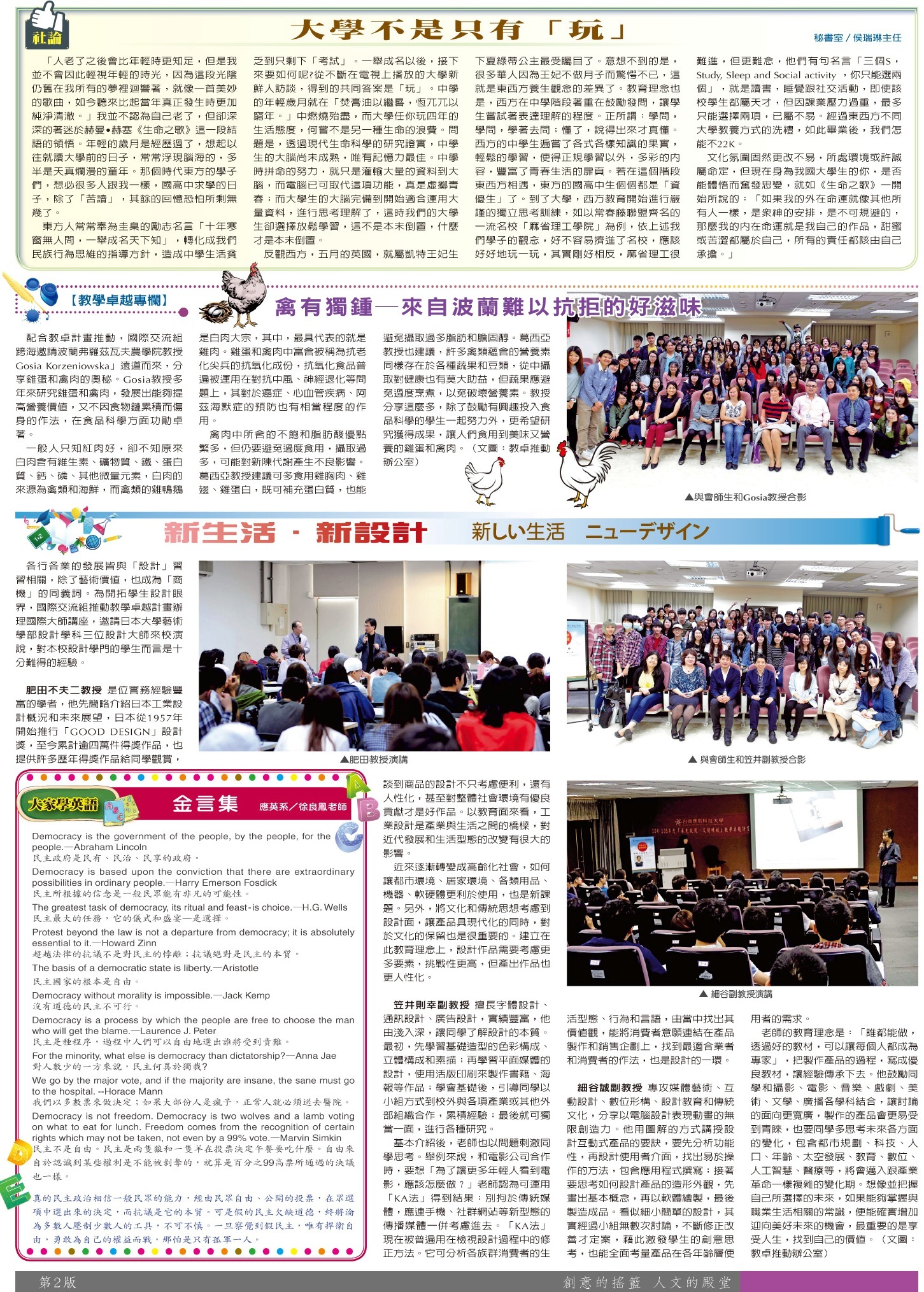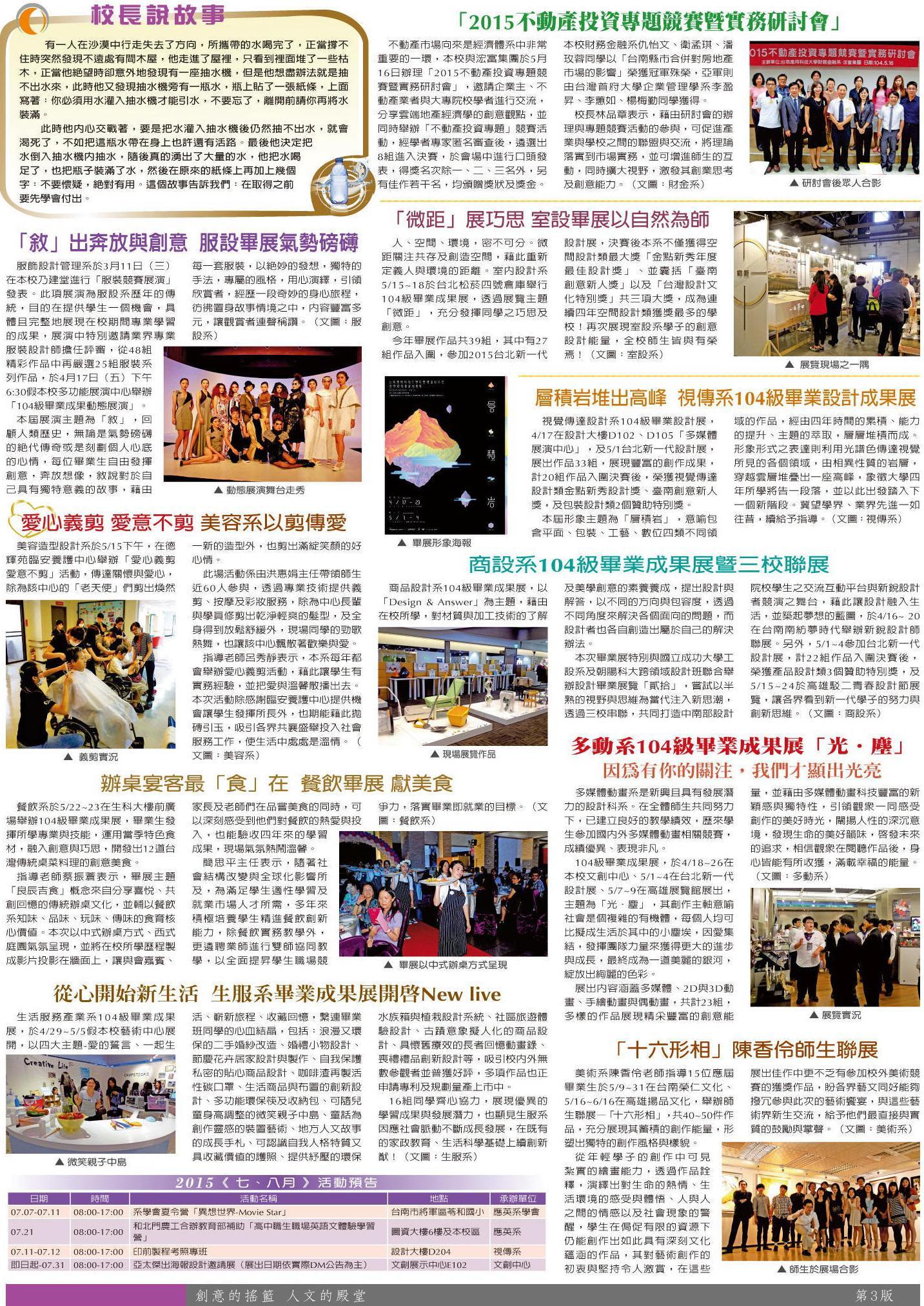 校長說故事•系學程報導•活動預告