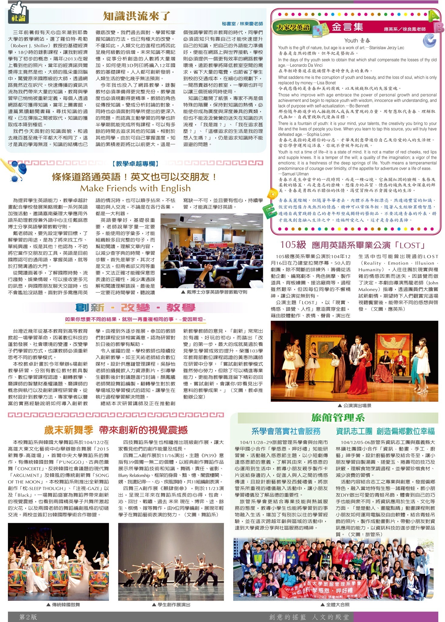 校園傳真 社論•教卓專欄•大家學英語•校系報導