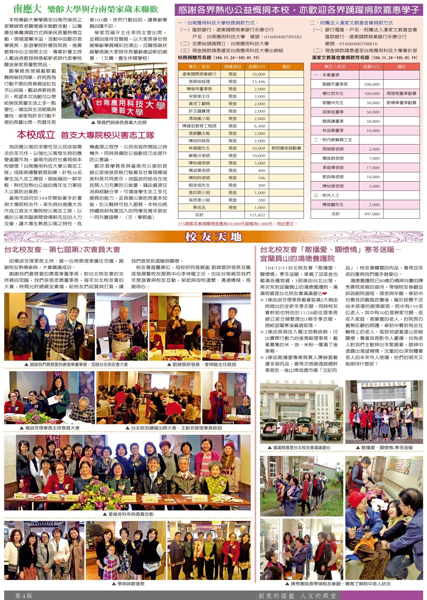 綜合訊息 校園報導 •捐贈芳名錄•校友天地