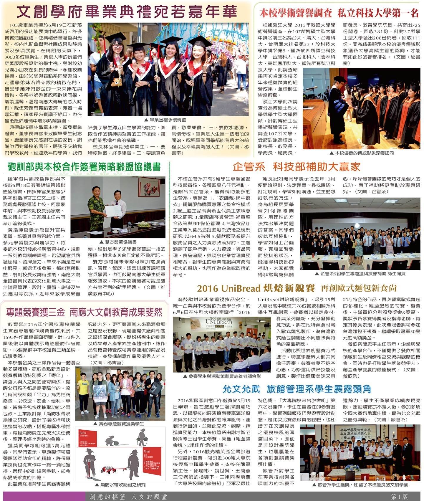校園焦點 105級畢業典禮•重點新聞•獲獎佳績