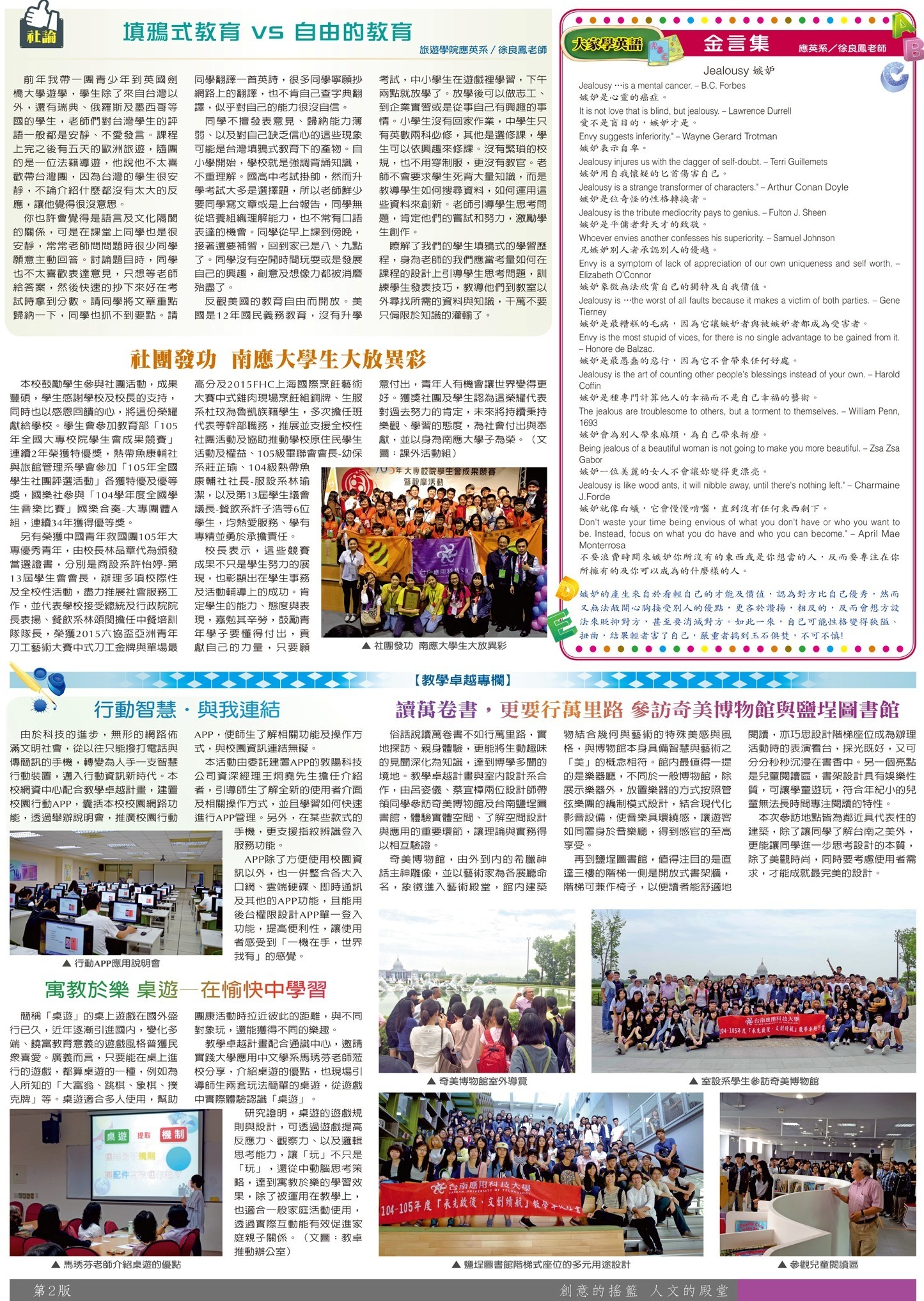 校園傳真 社論•獲獎榮耀•大家學英語•教卓專欄