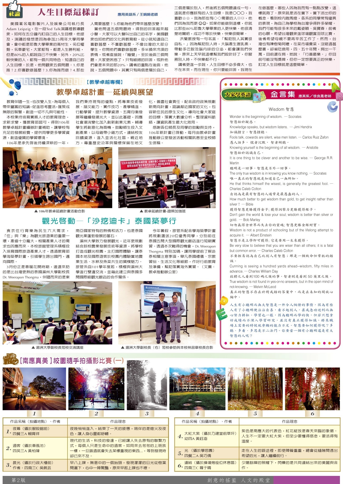 校園傳真 社論•教卓專欄•大家學英語•校園攝影作品