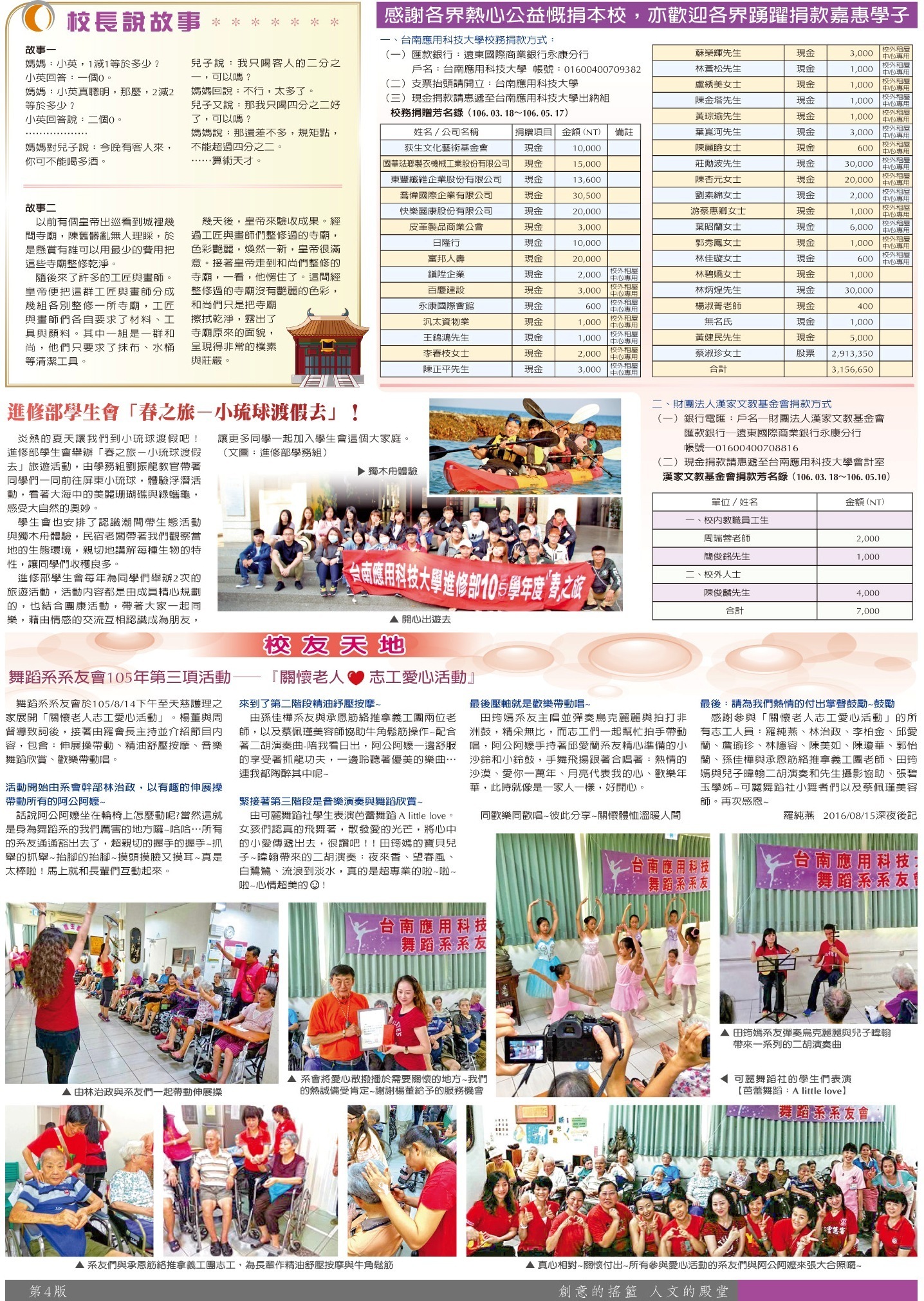 綜合訊息 校長說故事•進修部專欄•捐贈芳名錄•校友天地