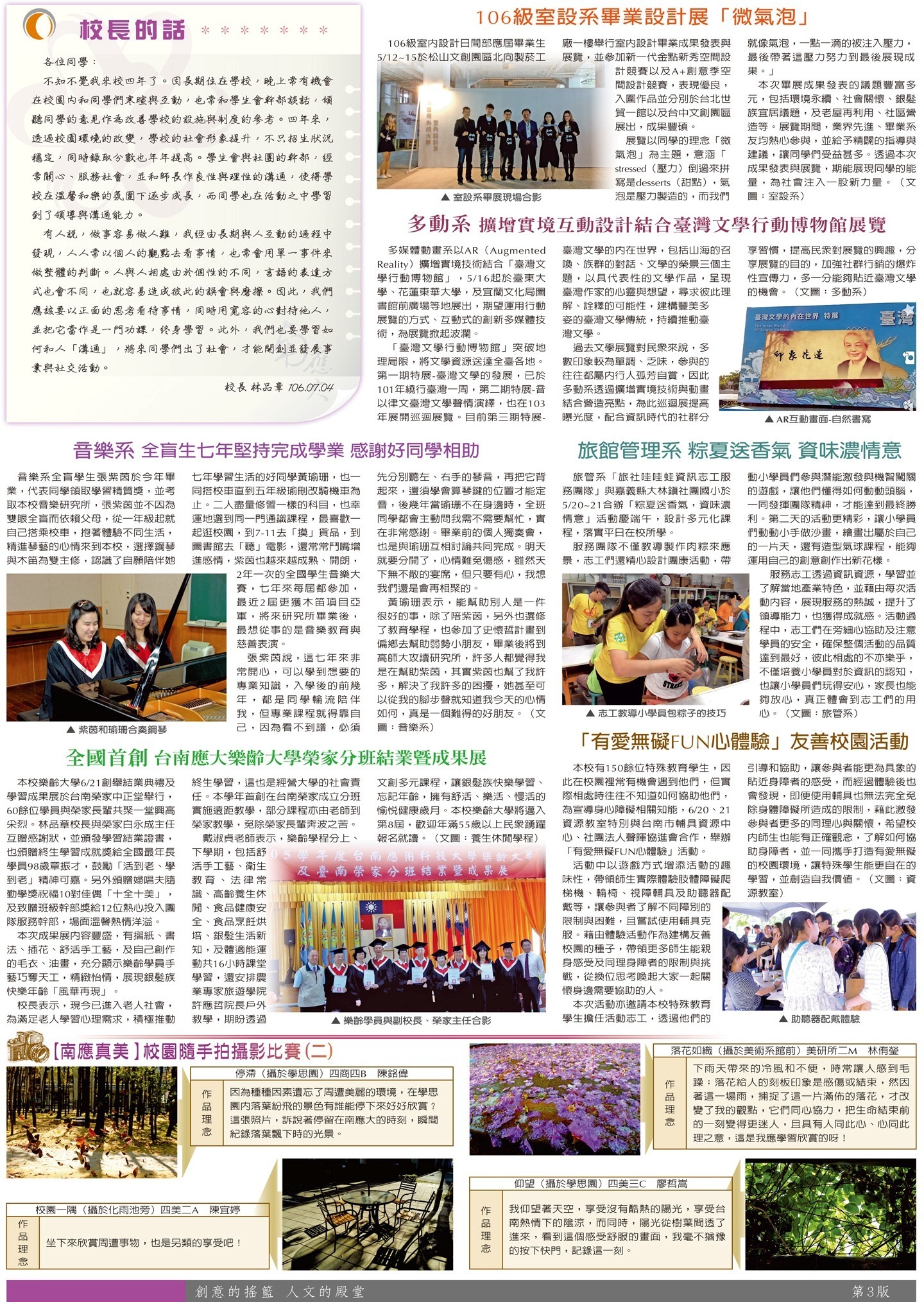 校園焦點 南應大董座交接•106級畢業典禮•獲獎榮耀