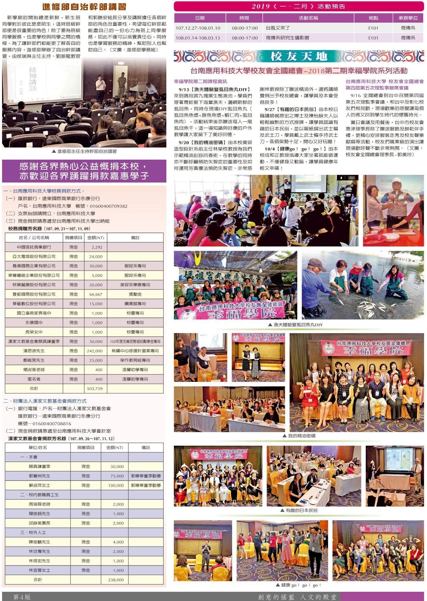 綜合訊息 進修部專欄•活動預告•捐贈芳名錄•校友天地