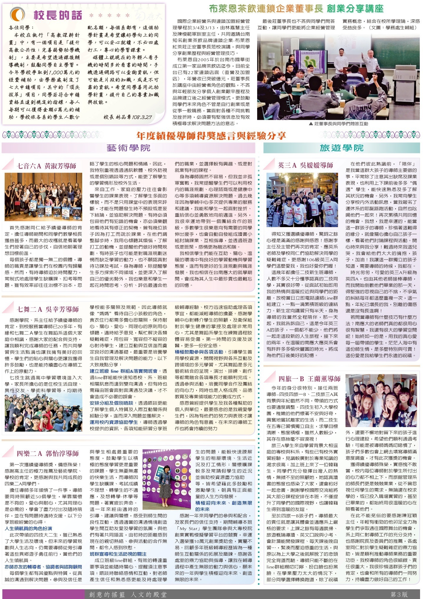 校園報導 校長的話•校園活動報導•績優導師經驗分享