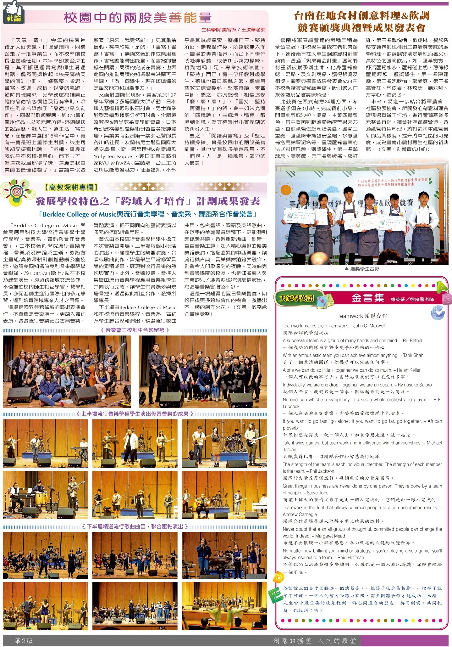 校園傳真 社論•校長的話•校園報導•榮譽榜•大家學英語