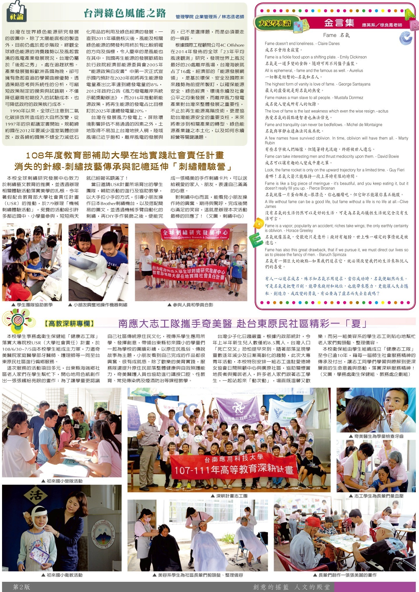 校園傳真 社論•校園報導•大家學英語•高教深耕專欄