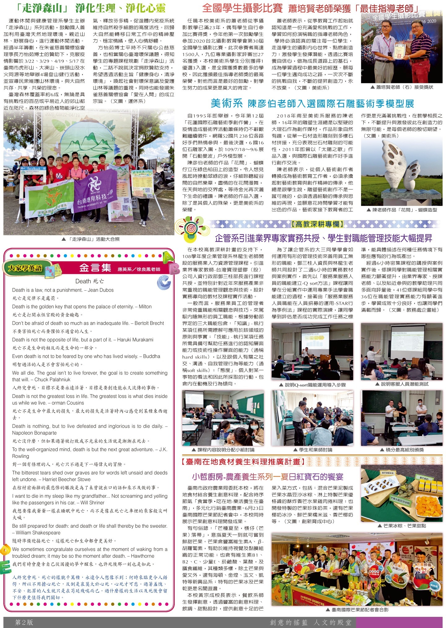 校園傳真 校外活動報導•教師獲殊榮•大家學英語•高教深耕專欄