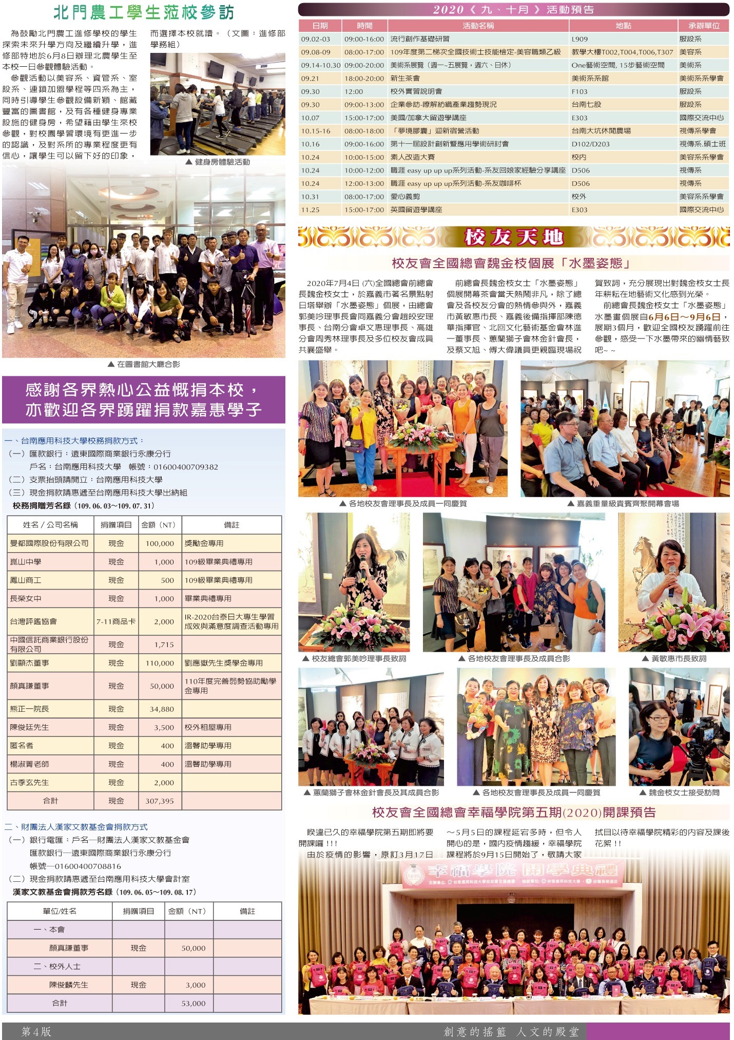 綜合訊息 進修部專欄•活動預告•捐贈芳名錄•校友天地