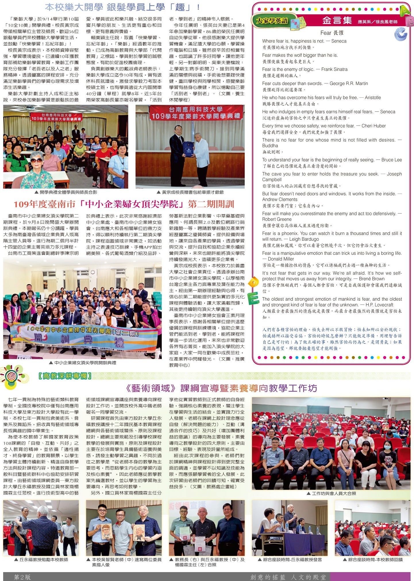 校園傳真 樂大開學•婦女頂尖學院•大家學英語•高教深耕專欄
