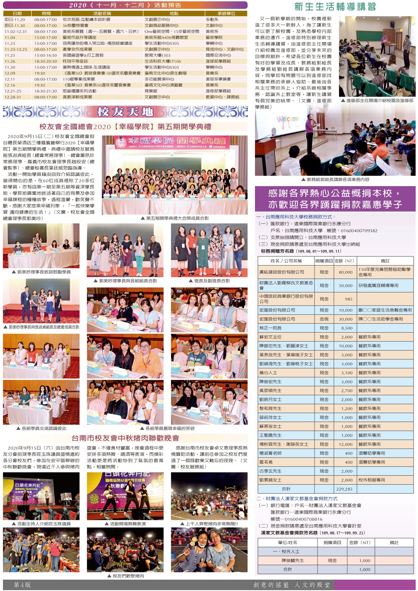 綜合訊息 進修部專欄•活動預告•校友天地•捐贈芳名錄