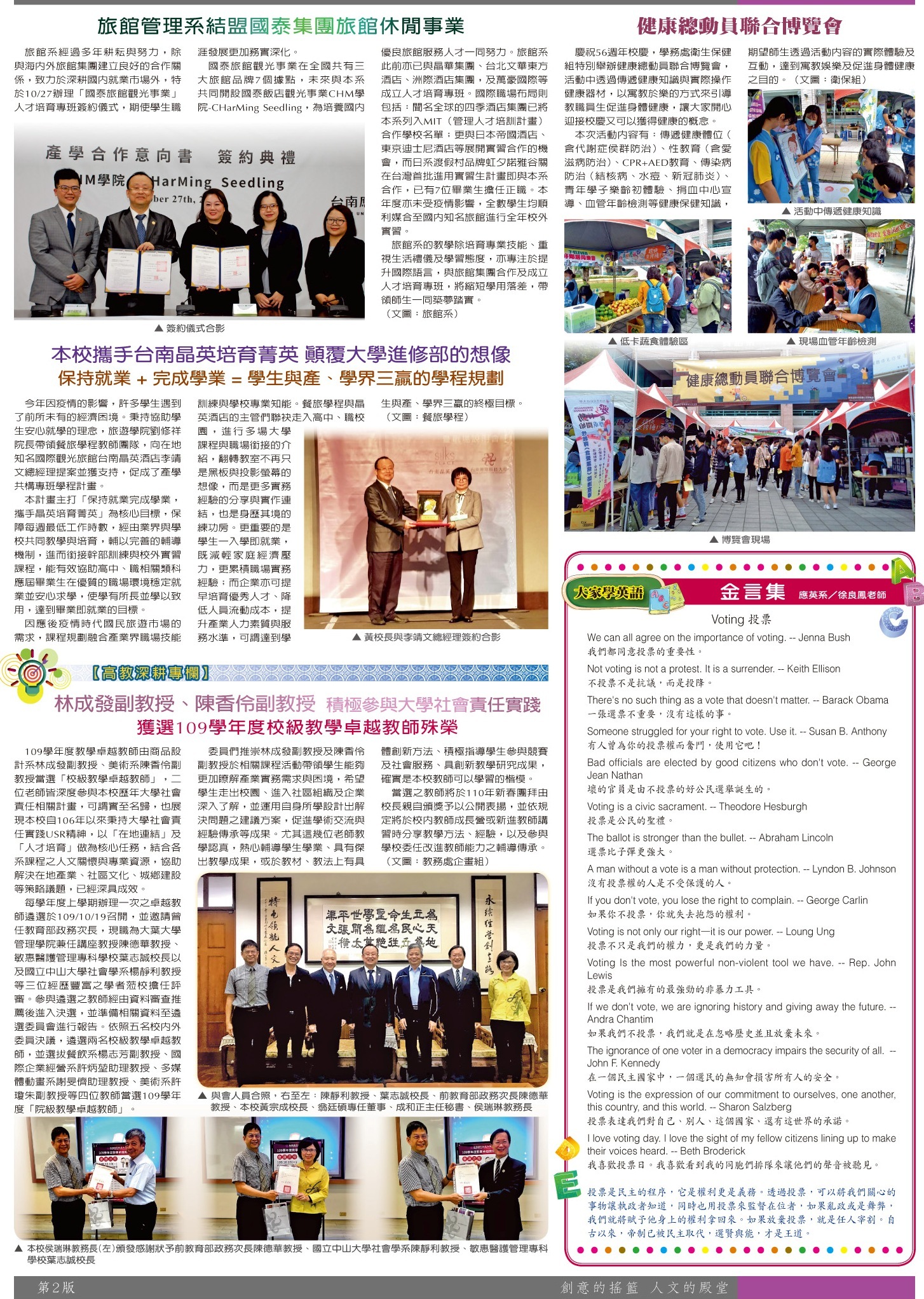 校園傳真 旅館系結盟與簽約儀式•大家學英語•高教深耕專欄