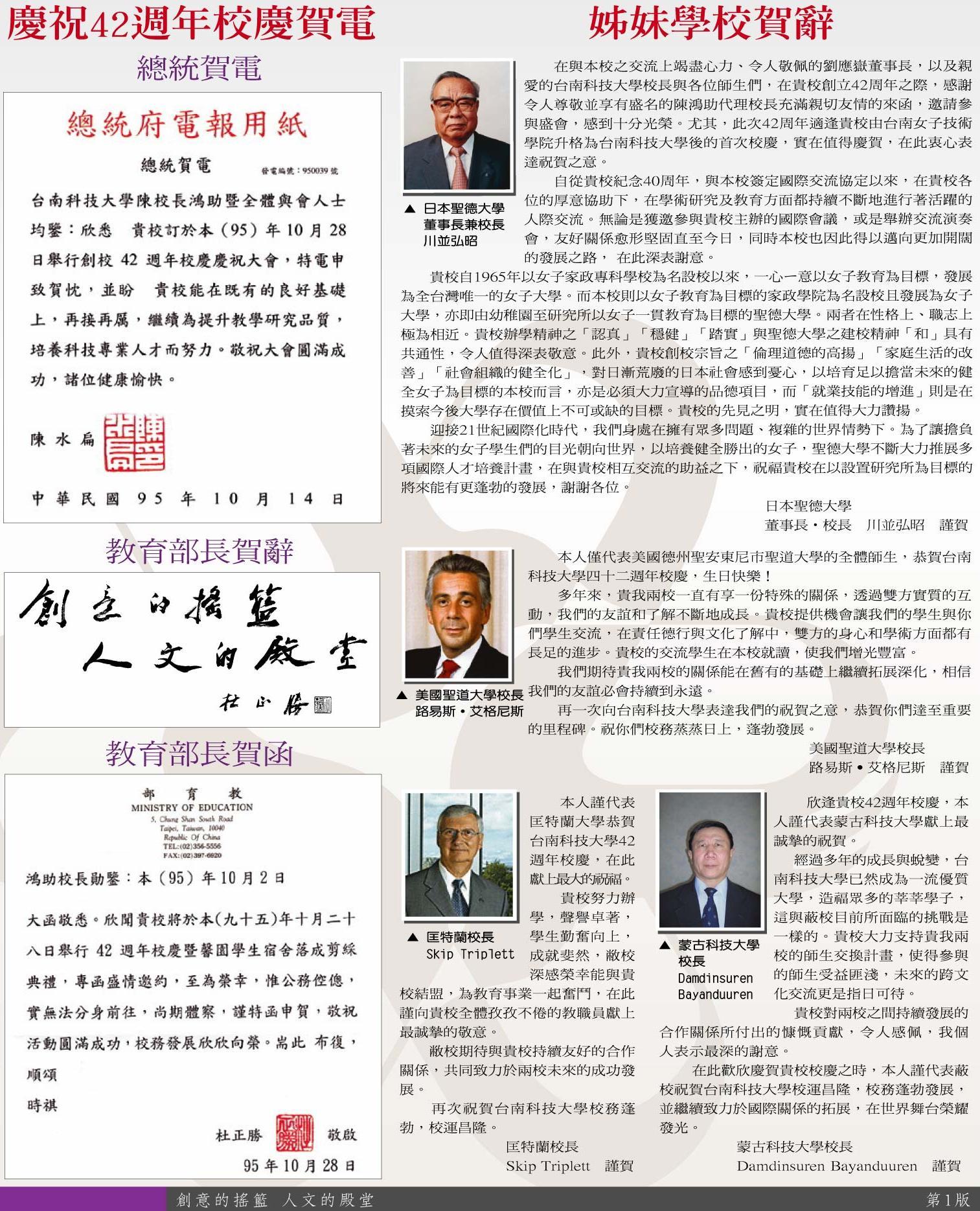 校園焦點 慶祝42週年校慶賀電•姊妹學校賀辭